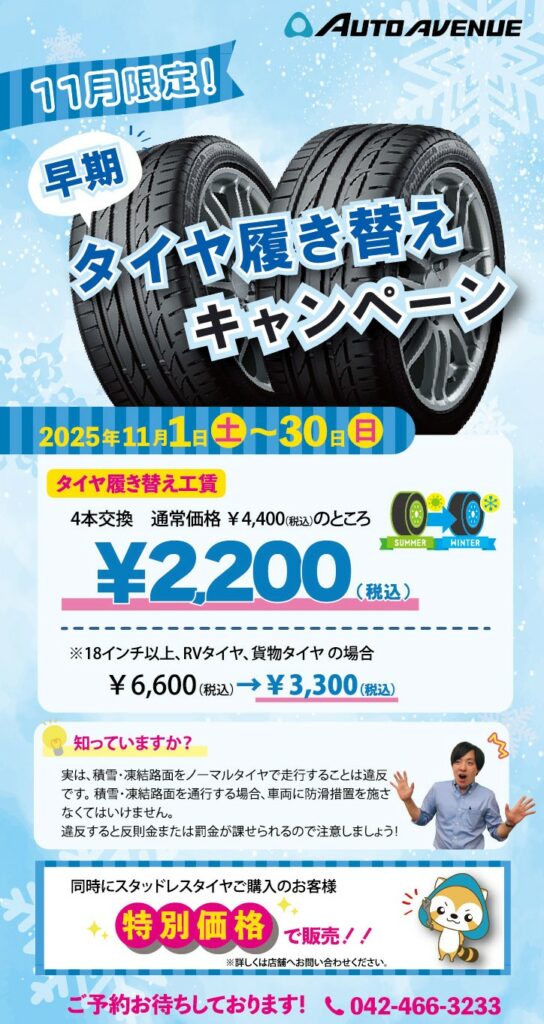 【11月限定】早期タイヤ履き替えキャンペーン開催!